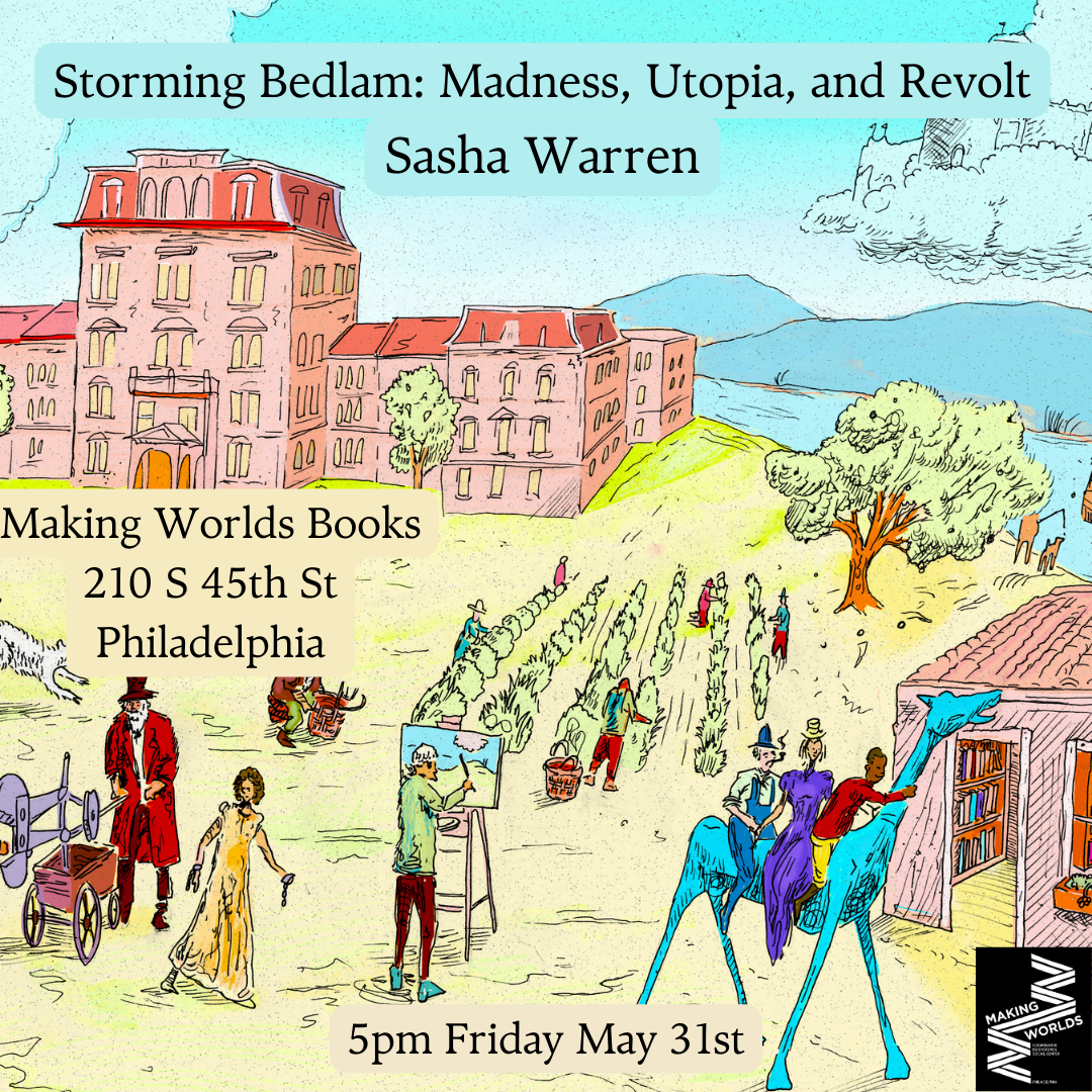 Minneapolis-based author Sasha Warren will give a presentation on his new book Storming Bedlam: Madness, Utopia, and Revolt. Storming Bedlam is a radical rereading of the history, theory, and practice of psychiatry that emphasizes the utopian origins of the psychiatric revolution and its roots in the political and economic revolutions of the 18th and 19th centuries. This presentation will include a reading accompanied by slides and some short film clips. Afterwards, Sasha will answer audience questions.