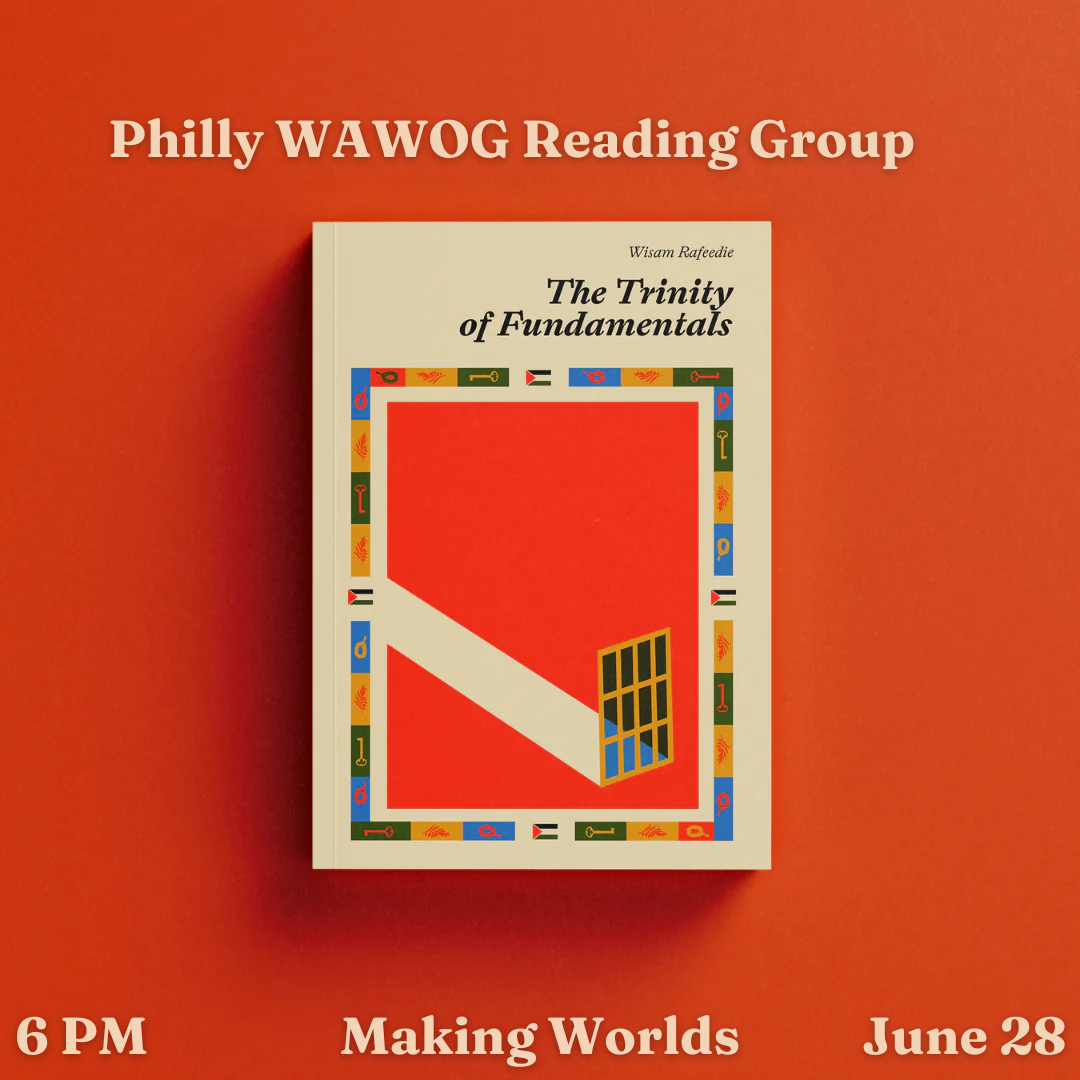 Philly Writers Against the War on Gaza invites you to join a discussion on Wisam Rafeedie’s The Trinity of Fundamentals. This novel, newly translated into English for the first time by the Palestinian Youth Movement, was written in 1993 during Rafeedie’s time in Zionist prison. The text was confiscated by prison guards and the novel was smuggled out by Wisam’s comrades, and soon after became a significant text for the Palestinian prisoner’s movement.